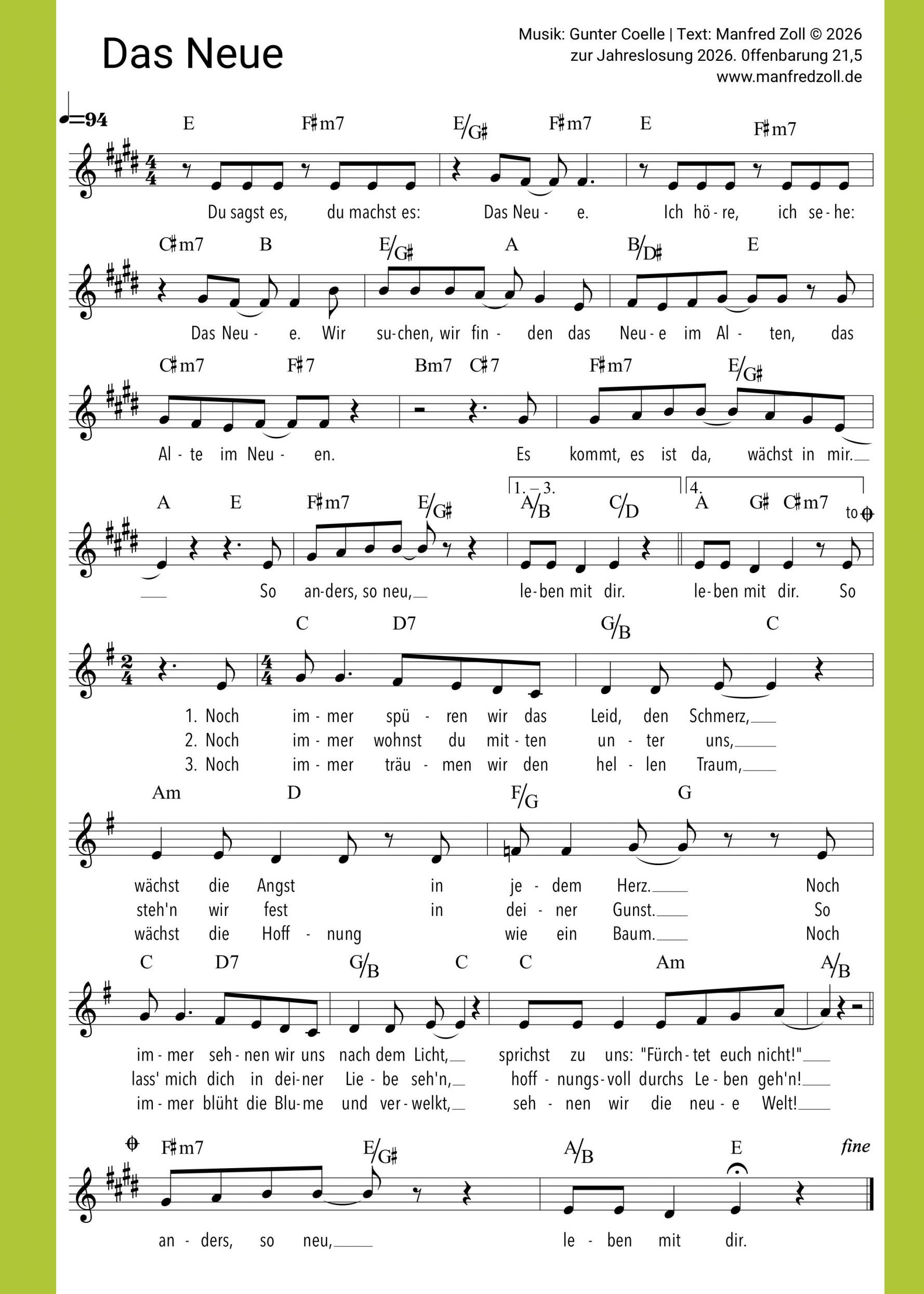 Das Lied zur Jahreslosung liegt in zwei Version vor. Jeweils als PDF zum Download und als Audiodatei zum Lernen und Verlieben. Einfach mal reinhören. Welche Version macht dir mehr Spaß? Welche liegt dir eher? Ich freu mich auf dein Feedback! mz@manfredzoll.de